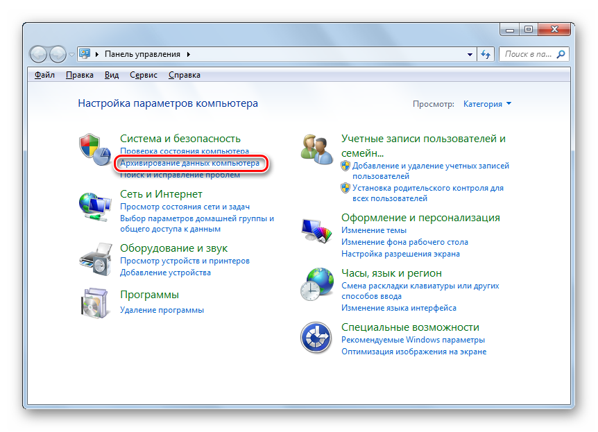 В блоке «Система и безопасность» выбирайте вариант «Архивирование данных компьютера». </li>