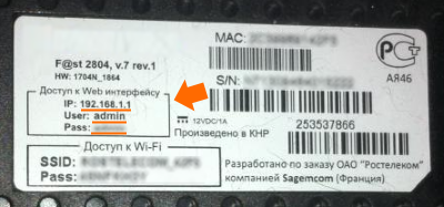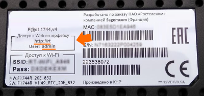Адрес и логин для доступа к веб-интерфейсу указаны на наклейке с обратной стороны маршрутизатора.