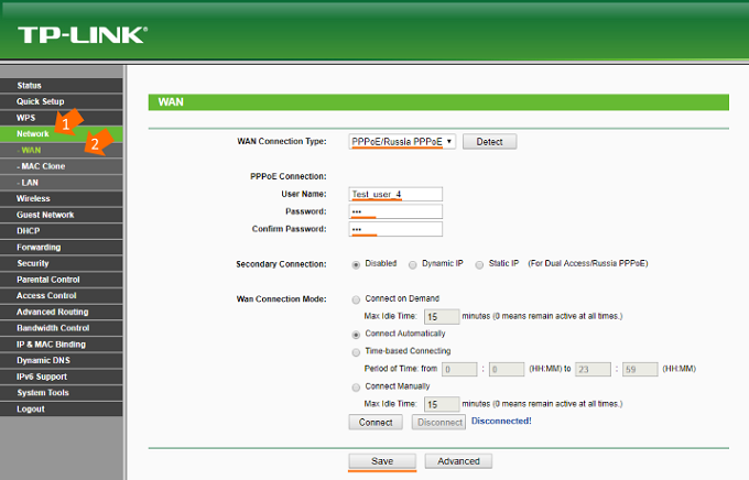 Начнем процедуру отладки с корректировки WAN. Весь процесс не займет много времени, а выглядит он следующим образом:
