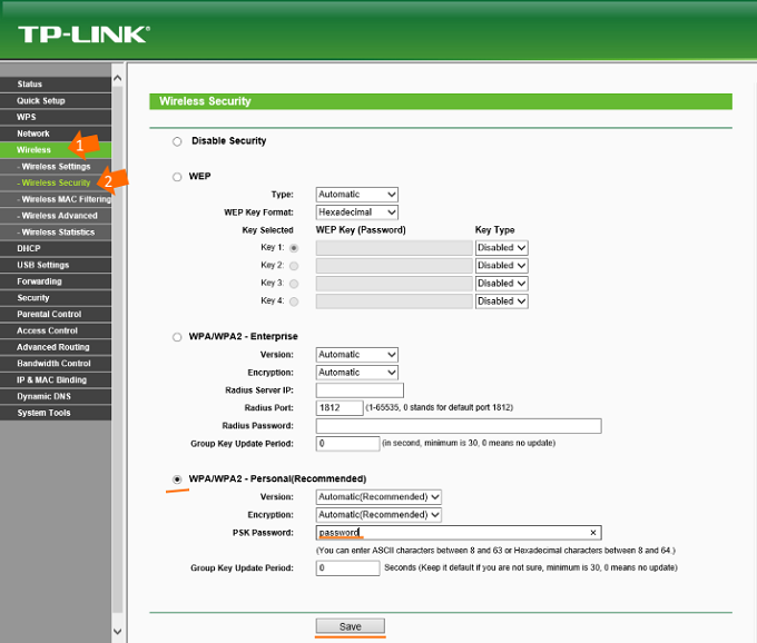 Для настройки защищенной сети выберите шифрование «WPA/WPA2».