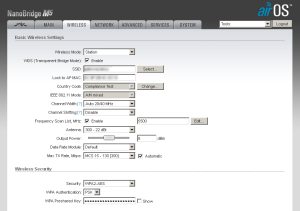 11) На месте входим в админку (не забудьте, стандартный пароль вы должны были сменить) антенны и идём на вкладку Wireless и в поле SSID прописываем имя сети которое мы задали в шаге номер 8. Wireless mode устанавливаем как Station (по умолчанию). Ширину канала (Channel Width) выбираем такую же как и на точке доступа. Нажимаем на кнопку Change, а после этого Apply.