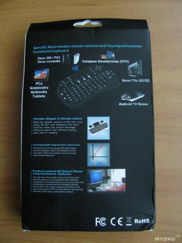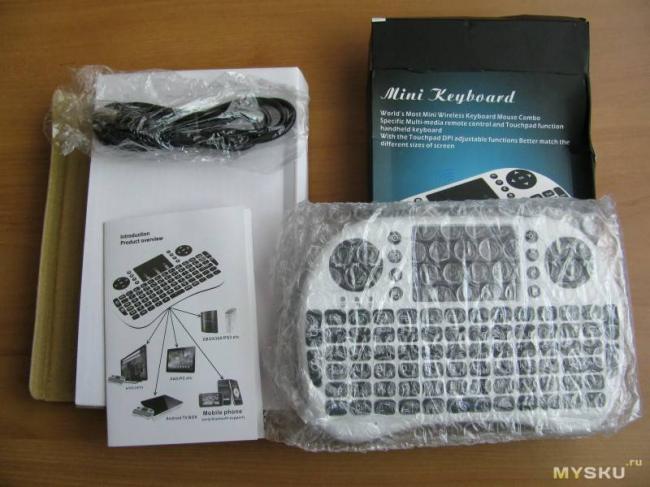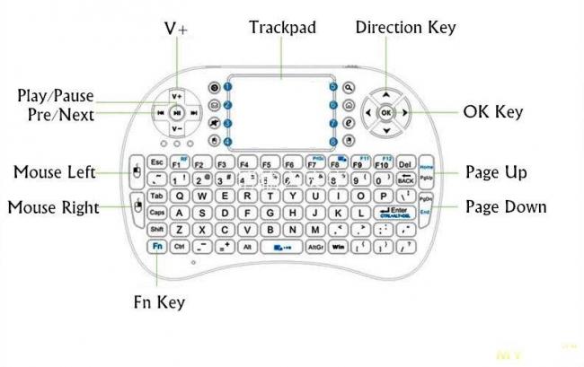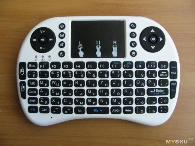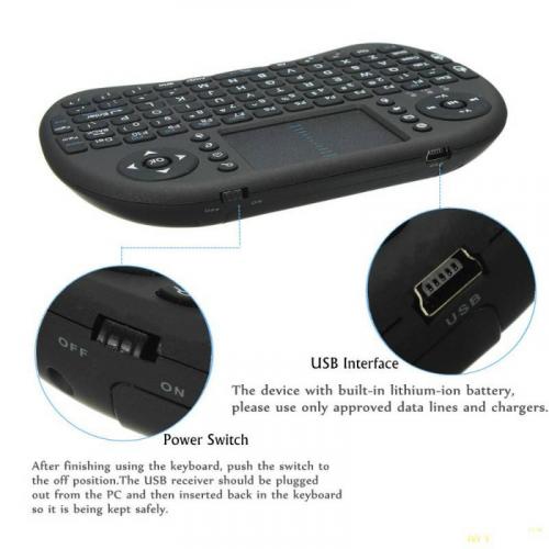 — 92 клавиши, 2.4 ГГц. Беспроводная клавиатура с сенсорной панелью. — Мини-qwerty-клавиатура, клавиши управления мультимедиа ПК и игровых клавиш управления. — Подходит для Google TV, HD-плеер, Android TV Box, foriPhone и веб-ТВ. — Максимальное рабочее расстояние: ≥10m без помех и направление движения не предел. — С интерфейсом USB адаптер. — Подходит для людей, чтобы смотреть интернет-телевидение, играет через широкополосного/ПК, как NBC, ABC, листы и IPTV. — Выберите просмотр удовольствий без хождения к компьютеру, чтобы изменить каналы/Прокрутка списка опций. — Регулируемый Touchpad. — Функция прокрутки колеса. — Сопоставимы с реальной сенсорной панелью ноутбука. — ТПУ клавиши очень удобны для набора опыта. — Съемный литий-ионный аккумулятор. — Для windows элементы управления мультимедиа. — Управление беспроводной связью мультимедийный ПК/смарт-мобильный телефон. — Цвет: черный/белый. — Размер: 146 мм * 97.5 мм * 19 мм (L * W * H)Поддерживаемые системы: — Microsoft windows, CE, 2000, XP, Vista и 7; — Linux; — FORMAC Операционная система X; — Symbian S60; — Операционная система Google Android (2.2 или выше);Комплект поставки: 1 xКлавиатура 1 xUSB приемник 1 xUSB кабель 1 xLithium-ионный аккумулятор