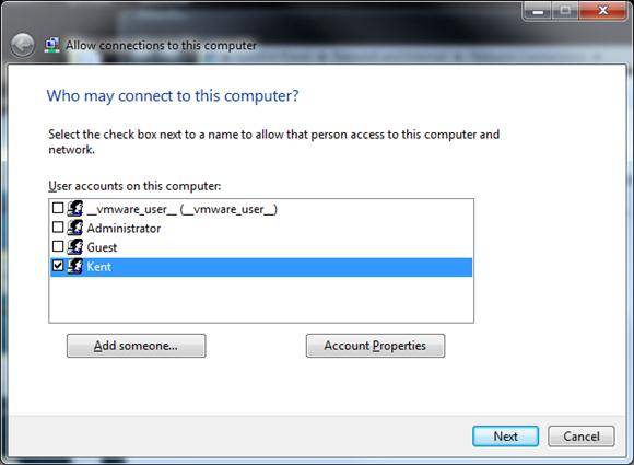 В появившемся окне мастера укажите пользователя, которому будет разрешено подключаться к этому компьютеру с Windows 7 посредством VPN.